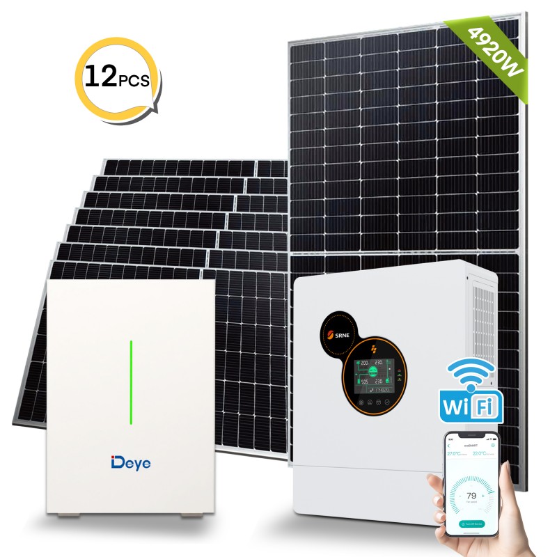 Off-Grid Solar Kit With 5000W 48V DC 120V AC Inverter +1Pcs 10.24Kwh Lithium Battery+12pcs 410W Solar Panels