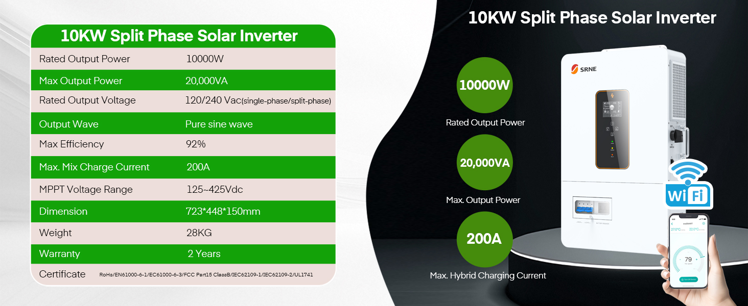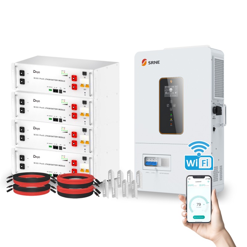 Off-Grid Solar Kit With 10000W 48V DC 120V AC Inverter +4Pcs 5.12Kwh Lithium Battery