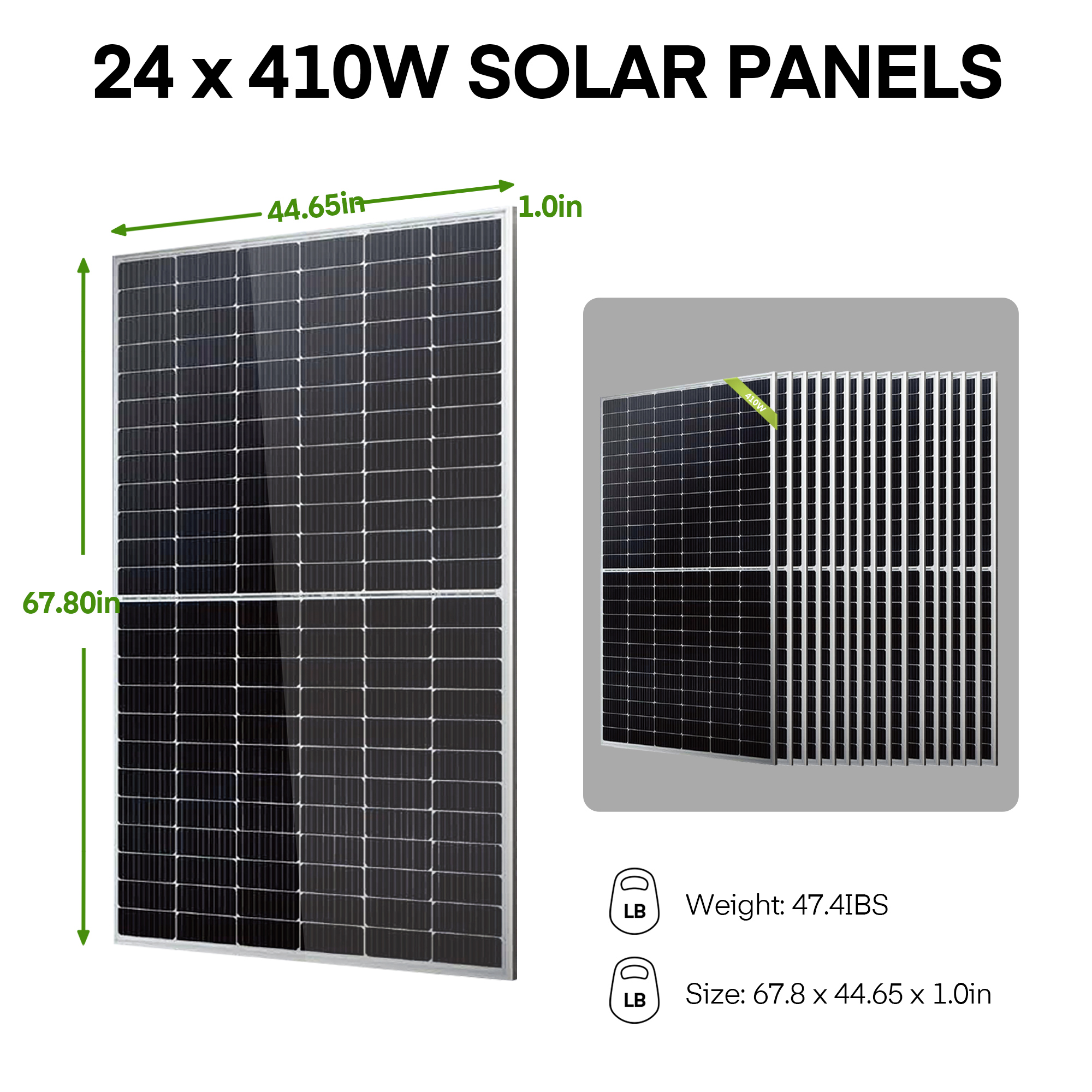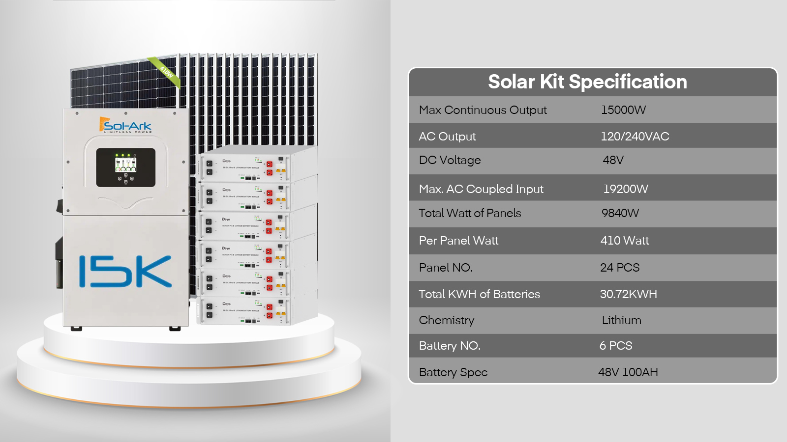 15000W 60VDC 120V/240V Solar Inverter 2×10.24KWH Lithium Battery24X 410W Solar Panels