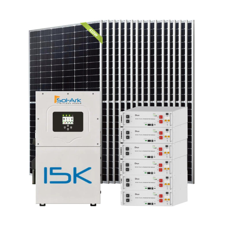 15000W 60VDC 120V/240V Solar Inverter 6×5.12KWH Lithium Battery24X 410W Solar Panels