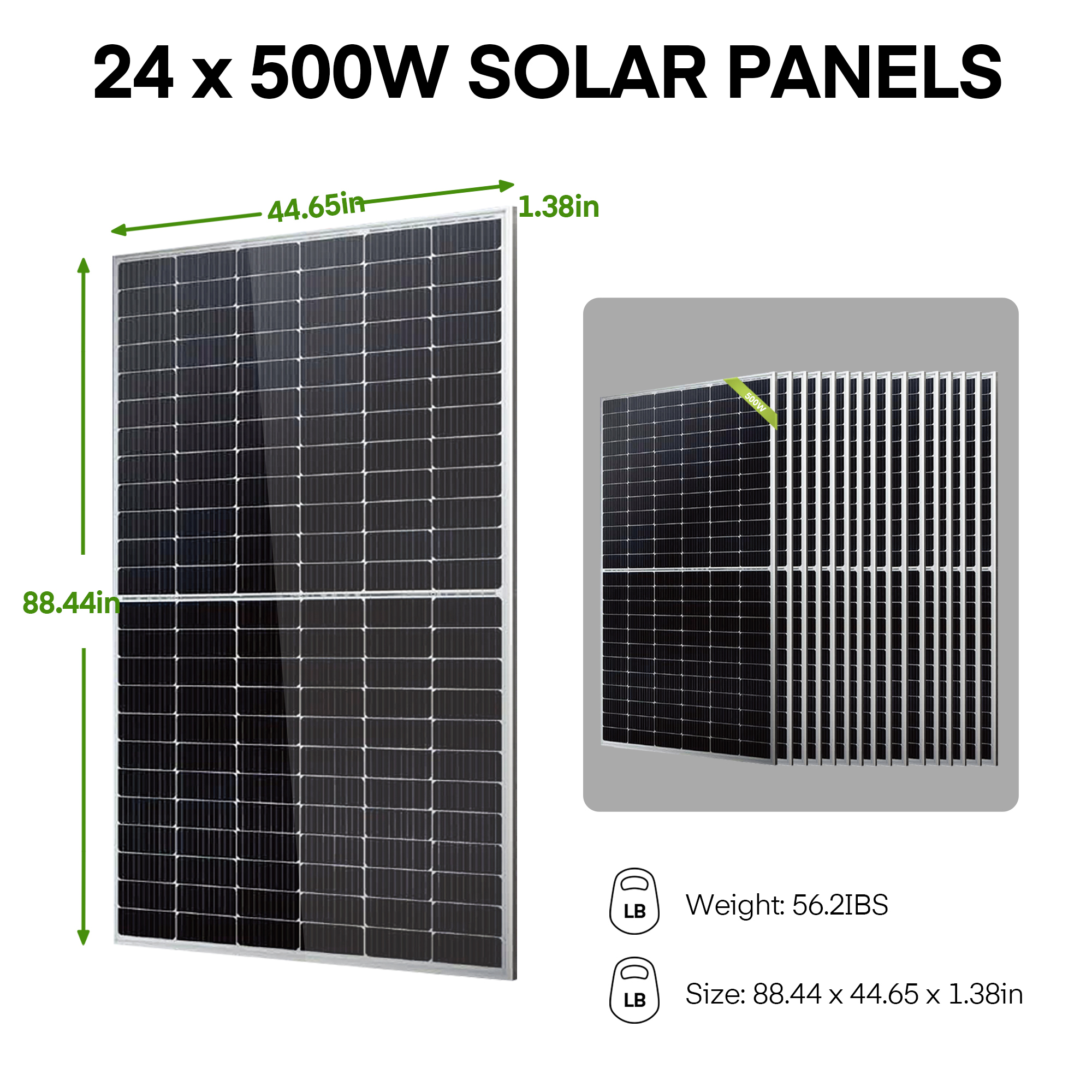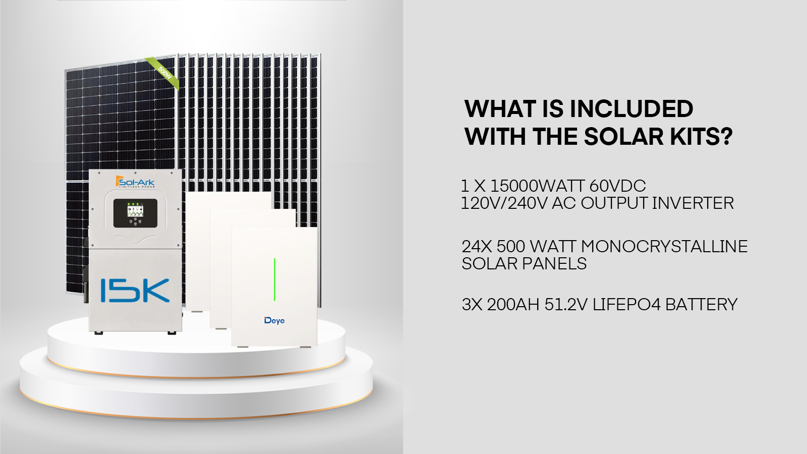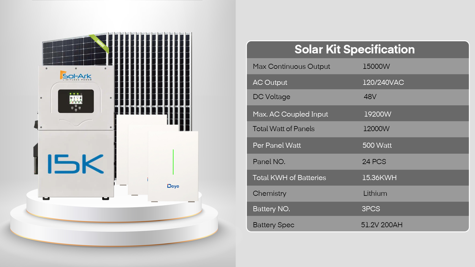 15000W 60VDC 120V/240V Solar Inverter 2×10.24KWH Lithium Battery20X 500W Solar Panels