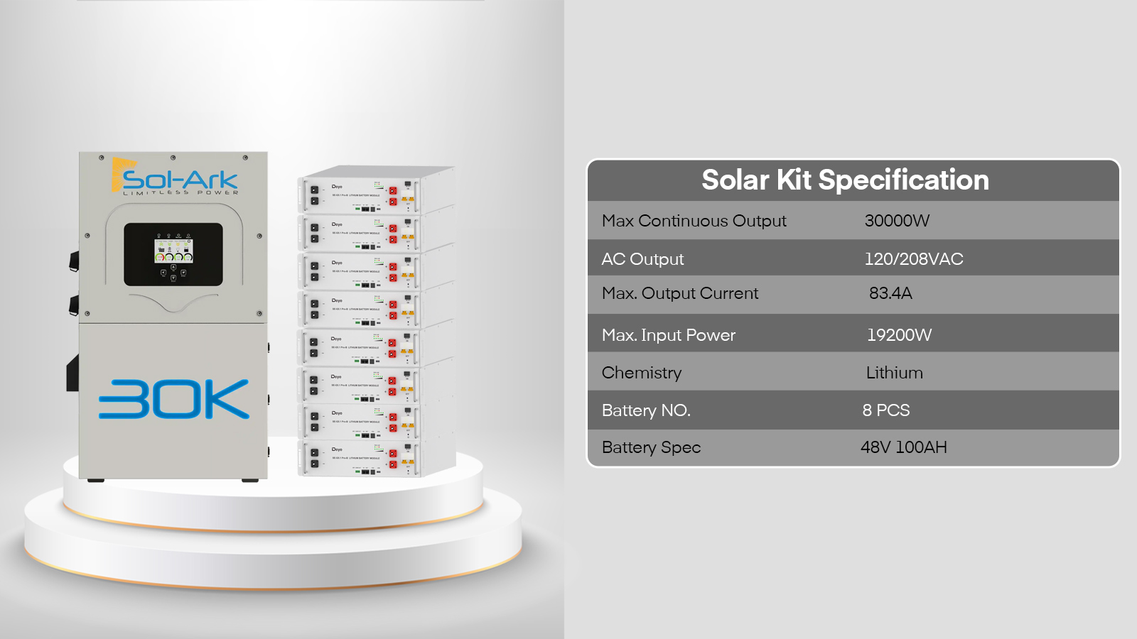 30000W 60VDC 120V/208V Solar Inverter 8×5.12KWH Lithium Battery48X 500W Solar Panels