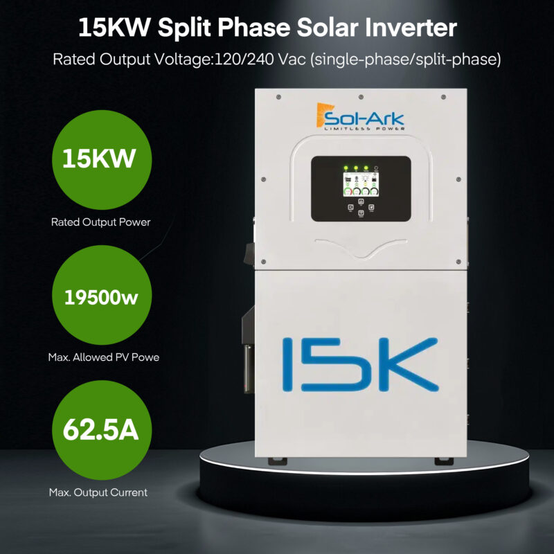 15000W 60VDC 120V/240V Solar Inverter 4×5.12KWH Lithium Battery20X 500W Solar Panels