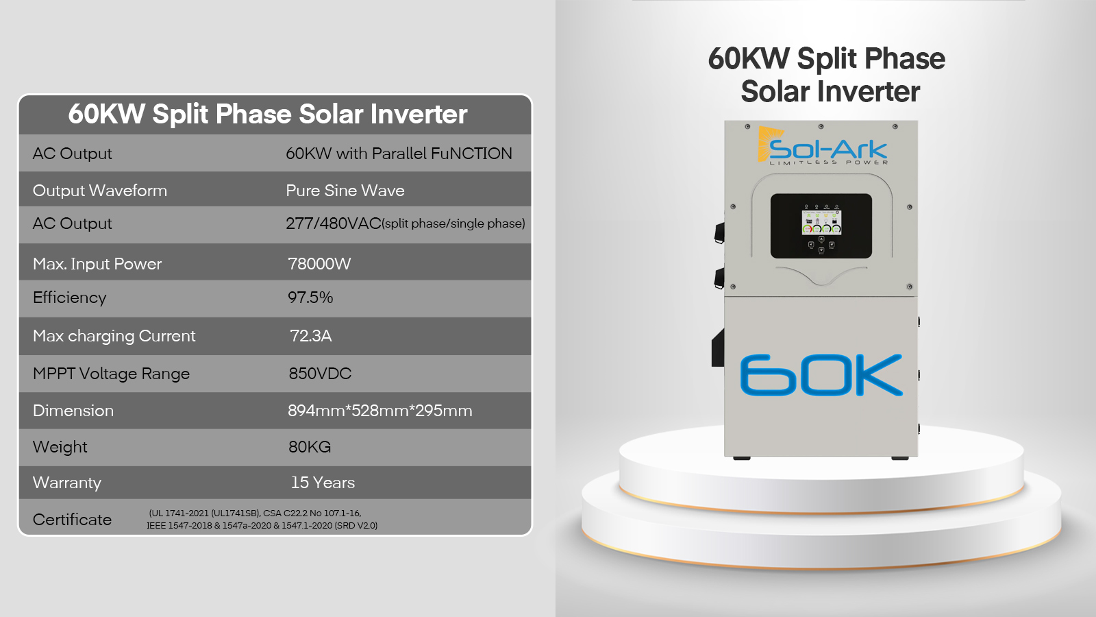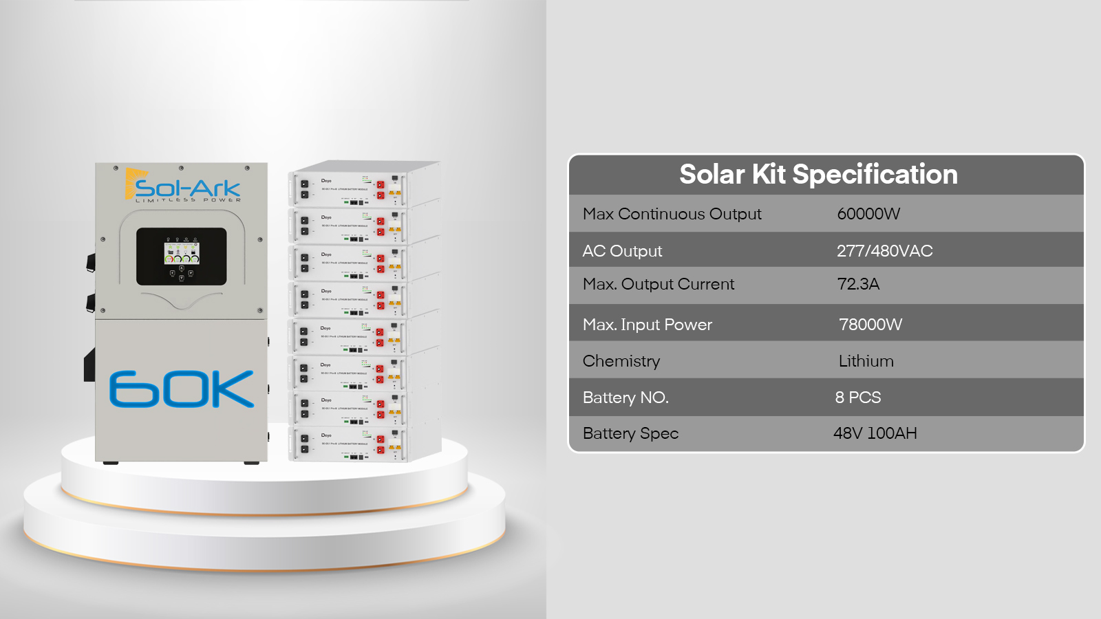60000W 60VDC 120V/208V Solar Inverter 8×5.12KWH Lithium Battery48X 500W Solar Panels