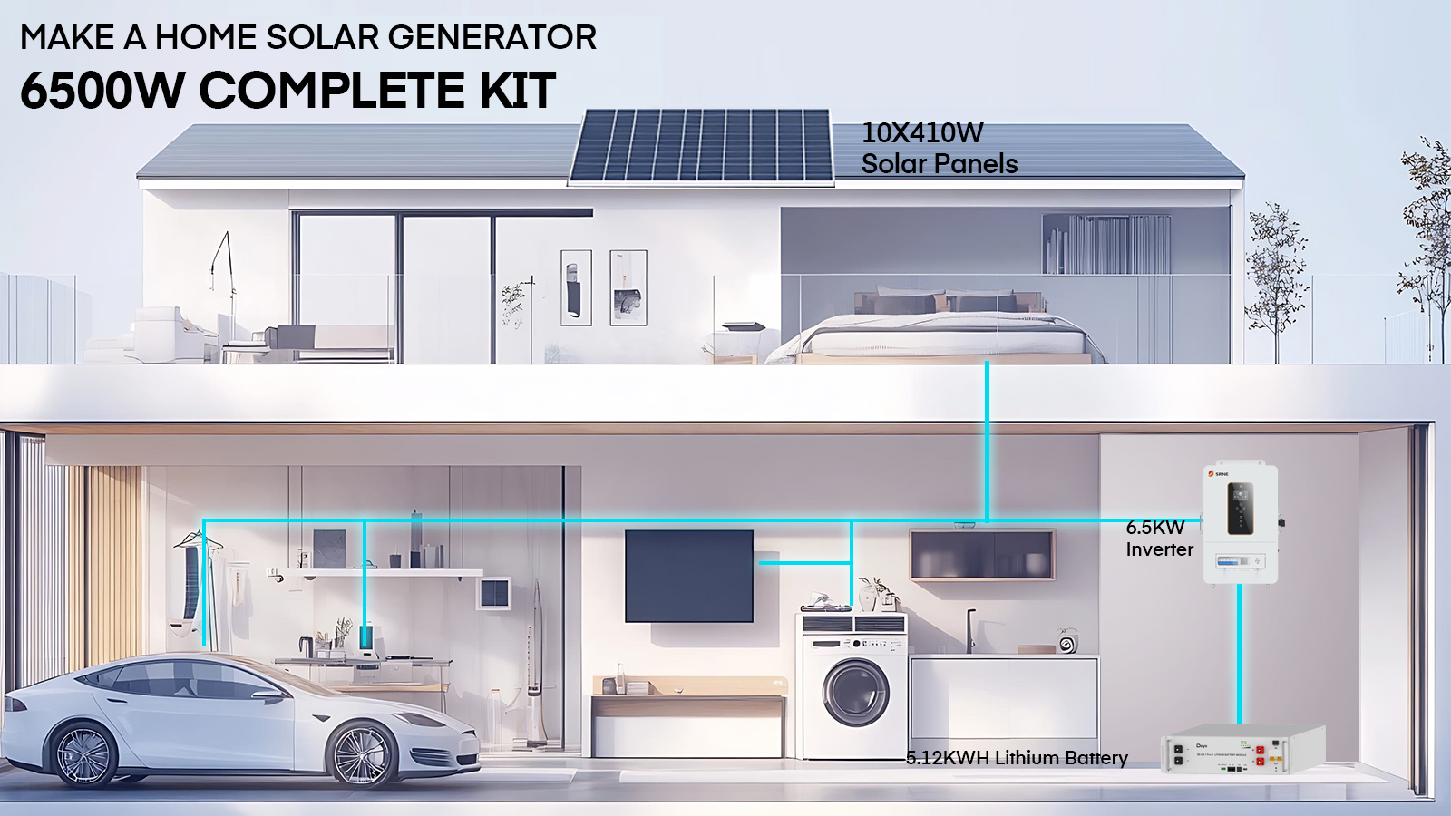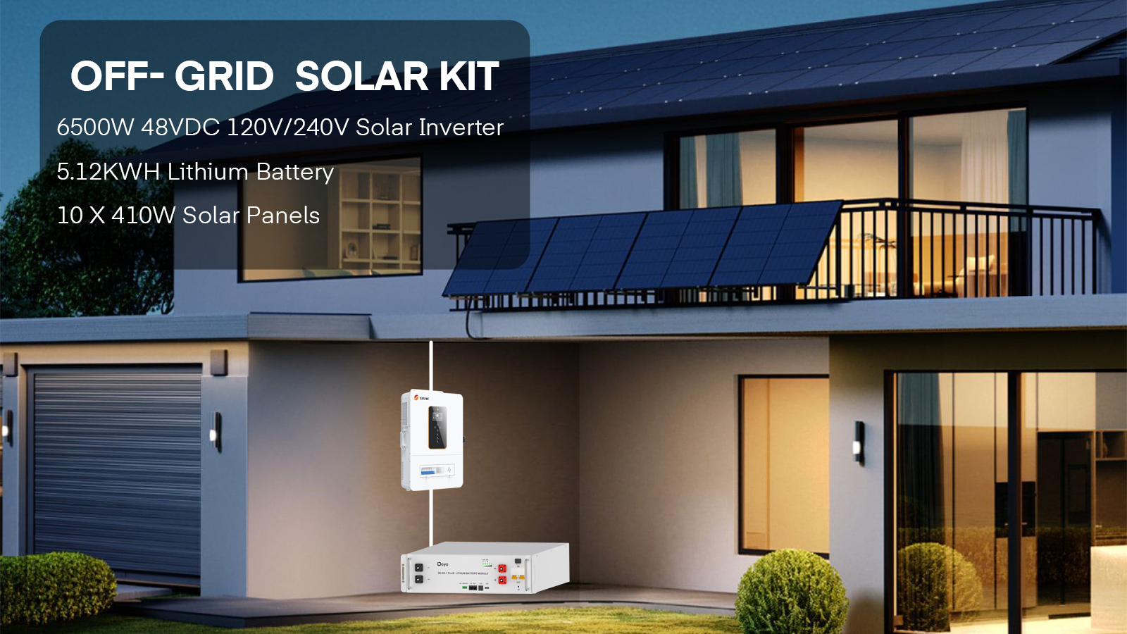 Off-Grid Solar Kit With 6500W 48V DC 120V AC Inverter +1Pcs 10.24Kwh Lithium Battery