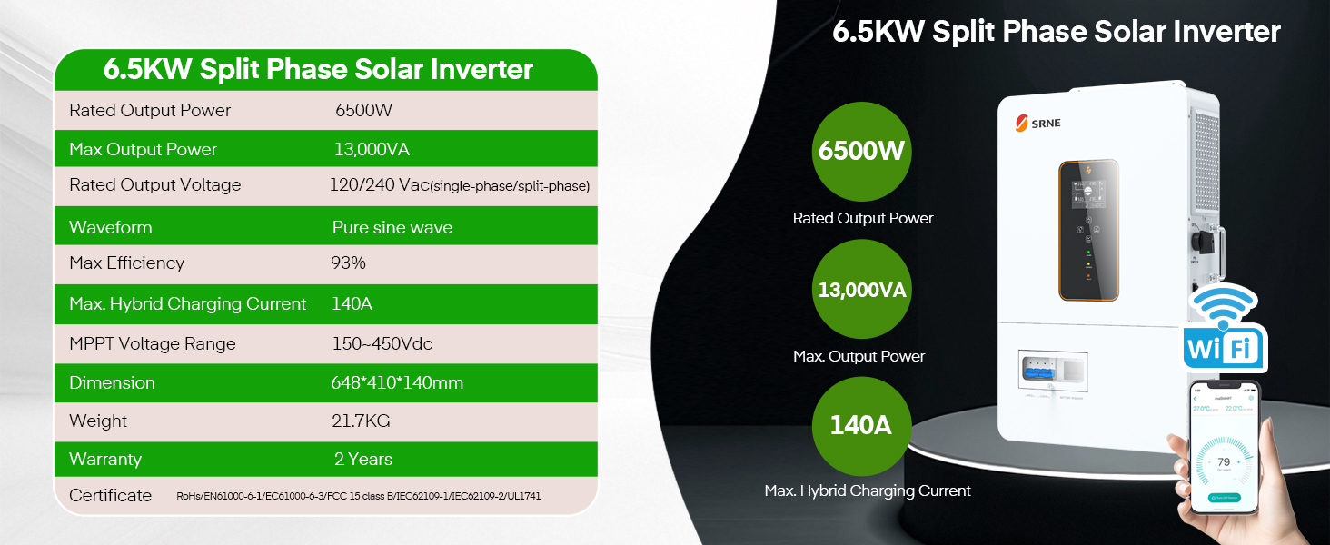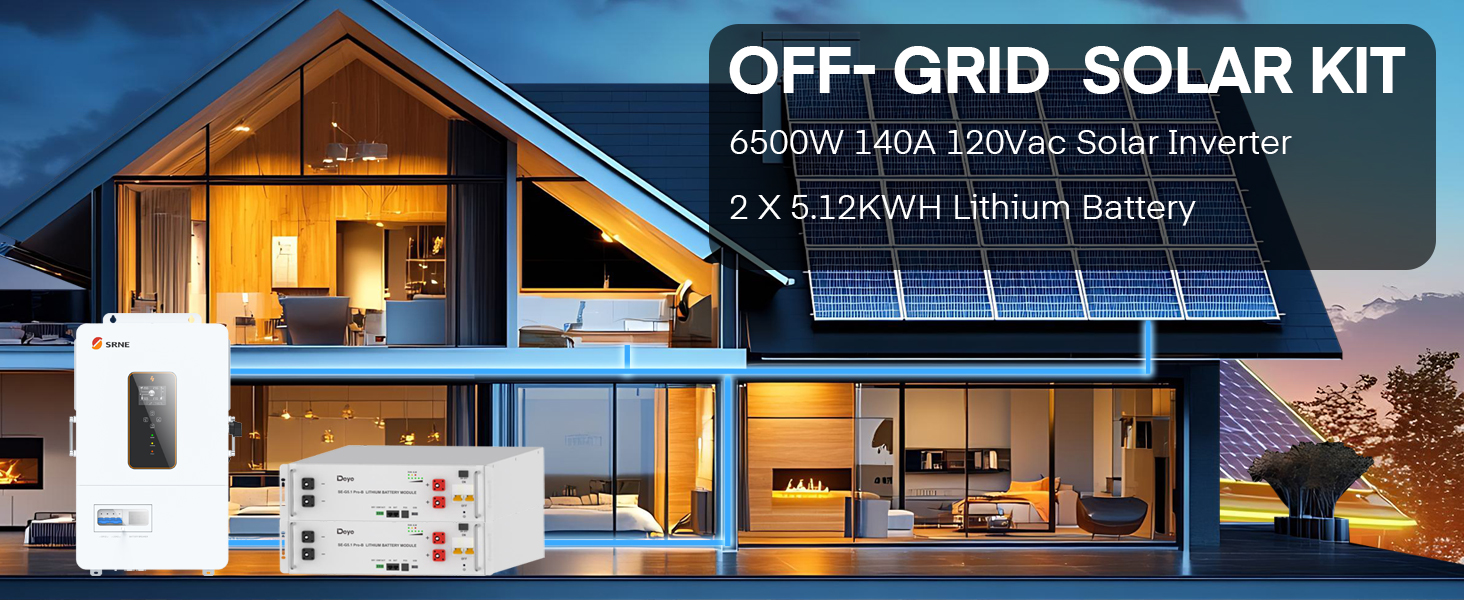 Off-Grid Solar Kit With 6500W 48V DC 120V AC Inverter +1Pcs 10.24Kwh Lithium Battery