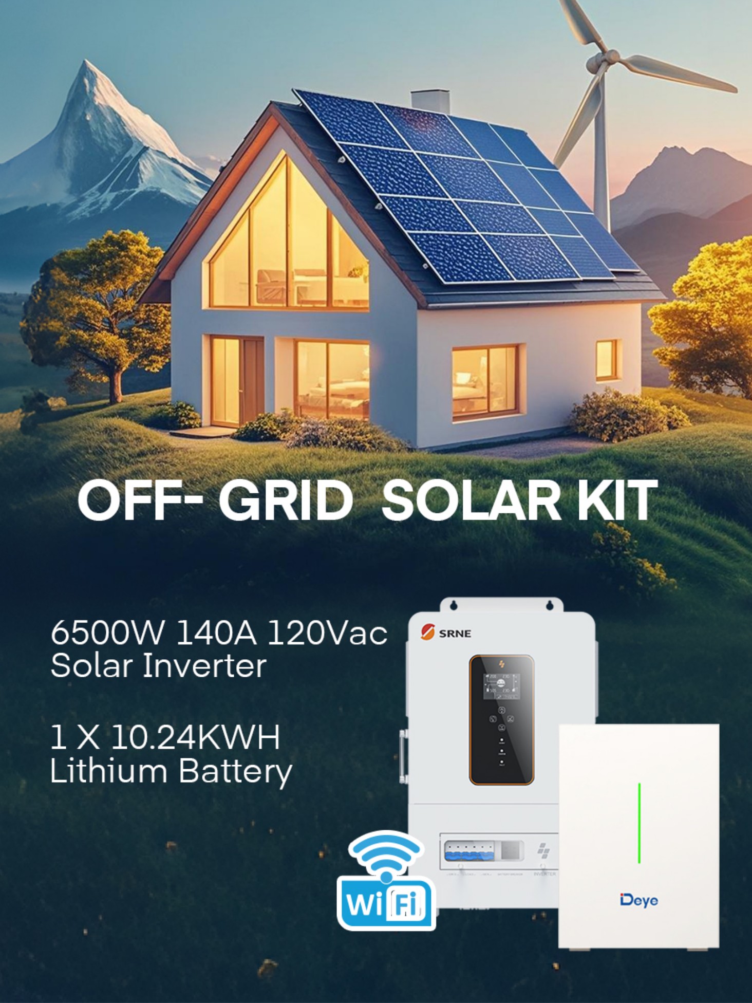 Off-Grid Solar Kit With 5000W 48V DC 120V AC Inverter +1Pcs 5.12Kwh Lithium Battery+8pcs 410W Solar Panels
