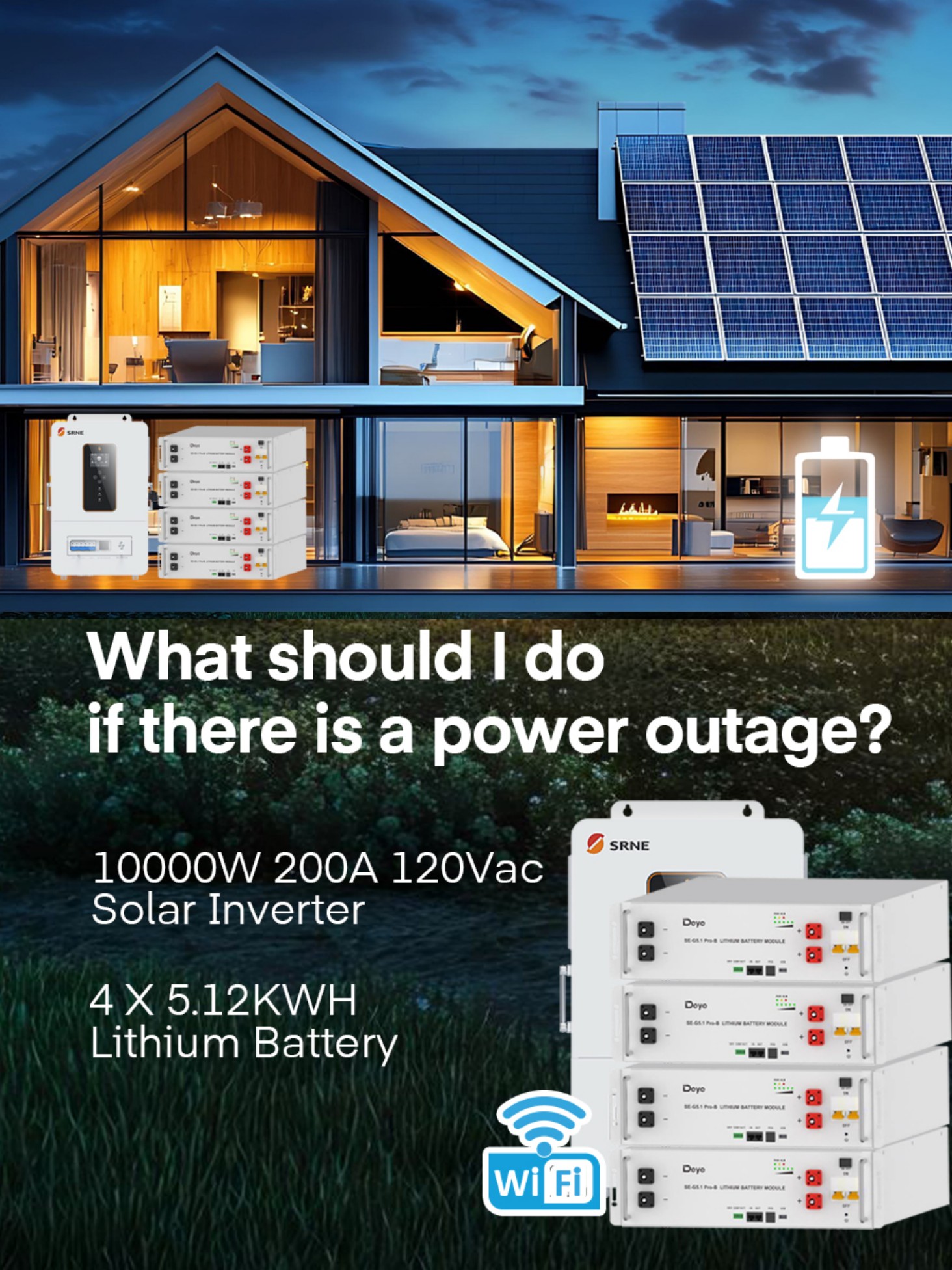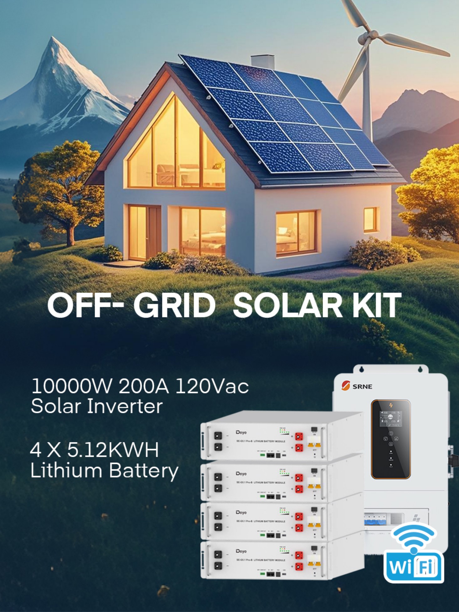 Off-Grid Solar Kit With 10000W 48V DC 120V AC Inverter +2Pcs 5.12Kwh Lithium Battery