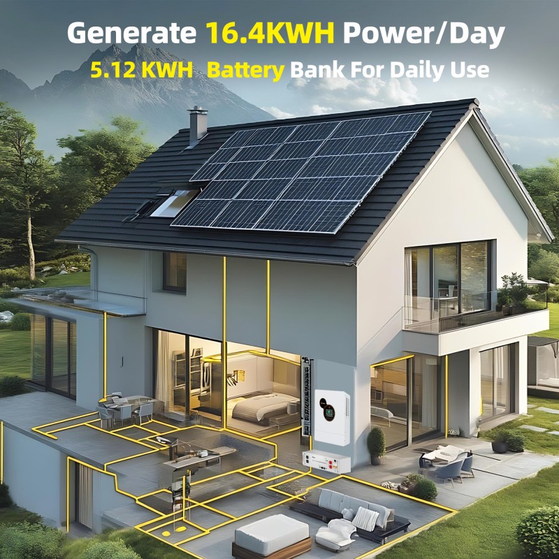 OFF-GRID SOLAR KIT WITH 5000W 48V DC 120V AC Inverter 1×5.12KWH Lithium Battery